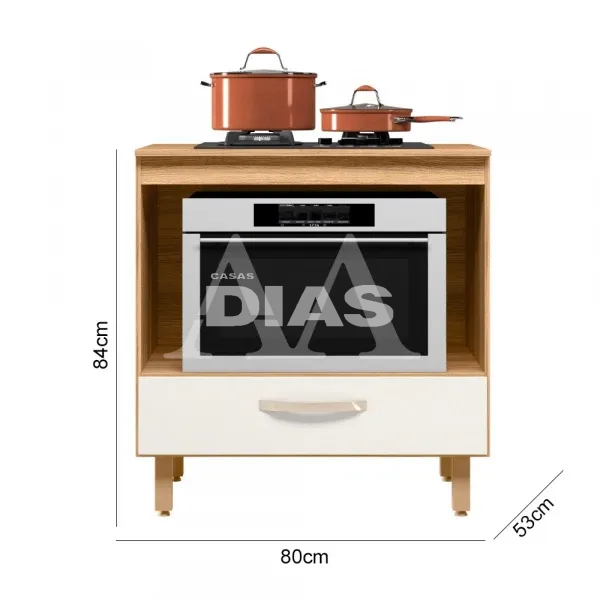 BALCAO NICIOLI 1G P/ COOKTOP 80 FREIJO/OFF WHITE CRISTAL
