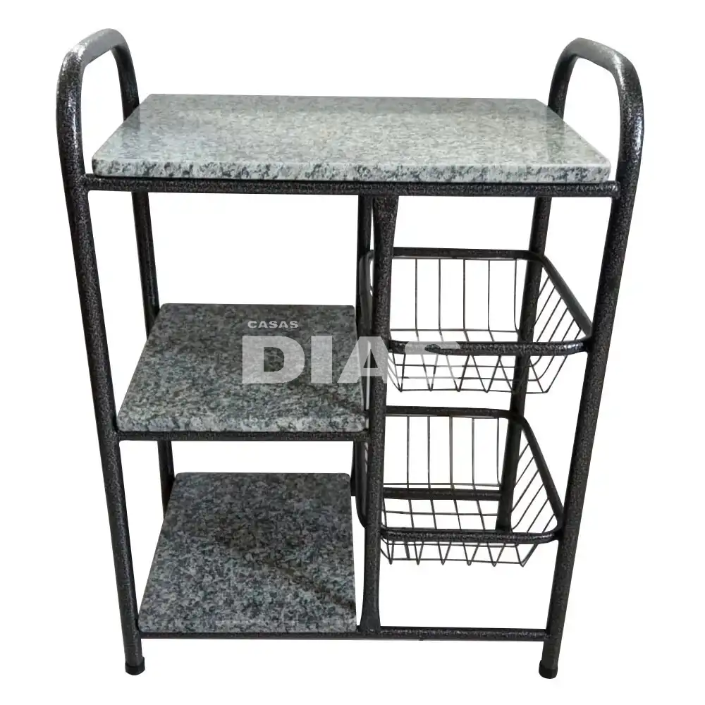FRUTEIRA SERRA TUBOS P/ MICRO 90CM C/GRANITO 2 CESTAS PRETO MARTELADO