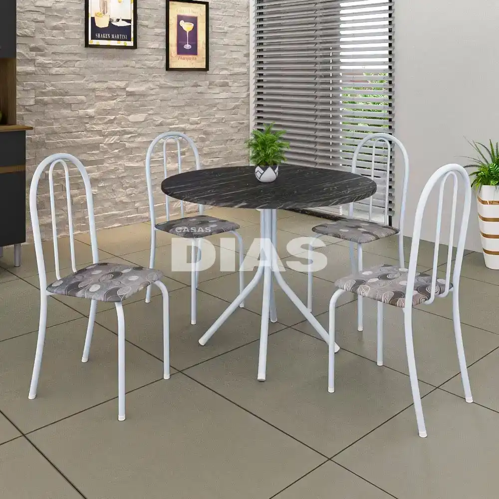 O conjunto de mesa Ane B com 4 cadeiras combina praticidade e elegância. A mesa tem estrutura em aço, que garante resistência e durabilidade, e tampo em pedra granito topázio, que dá um toque de sofisticação e beleza.