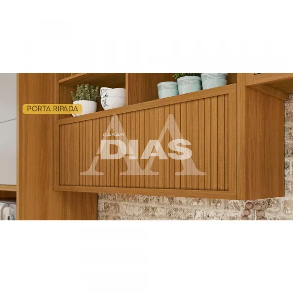 Módulo aéreo 120 cm com porta ripada articulada, nichos e adega.