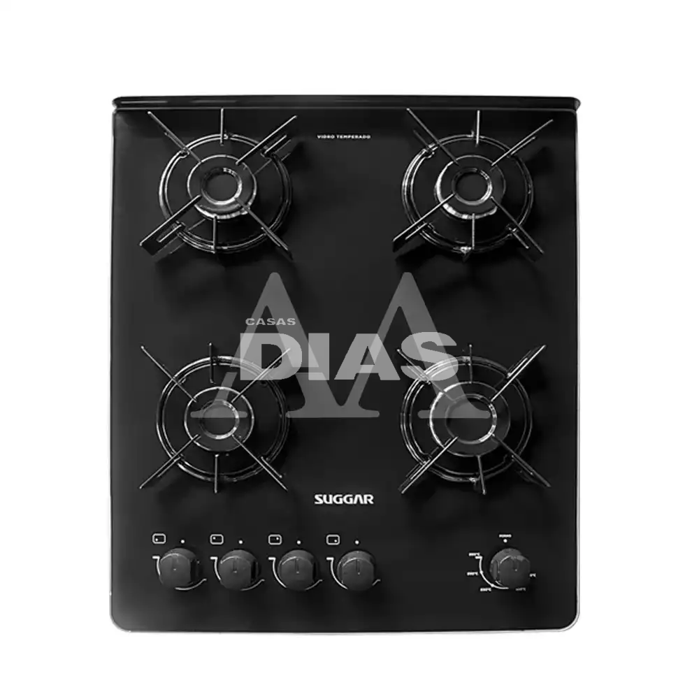 FOGAO 4B SUGGAR PISO NEO GLASS MESA VIDRO PRETO