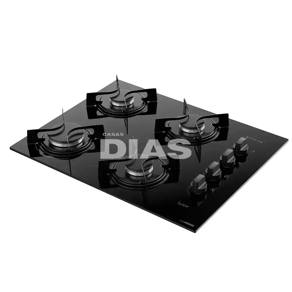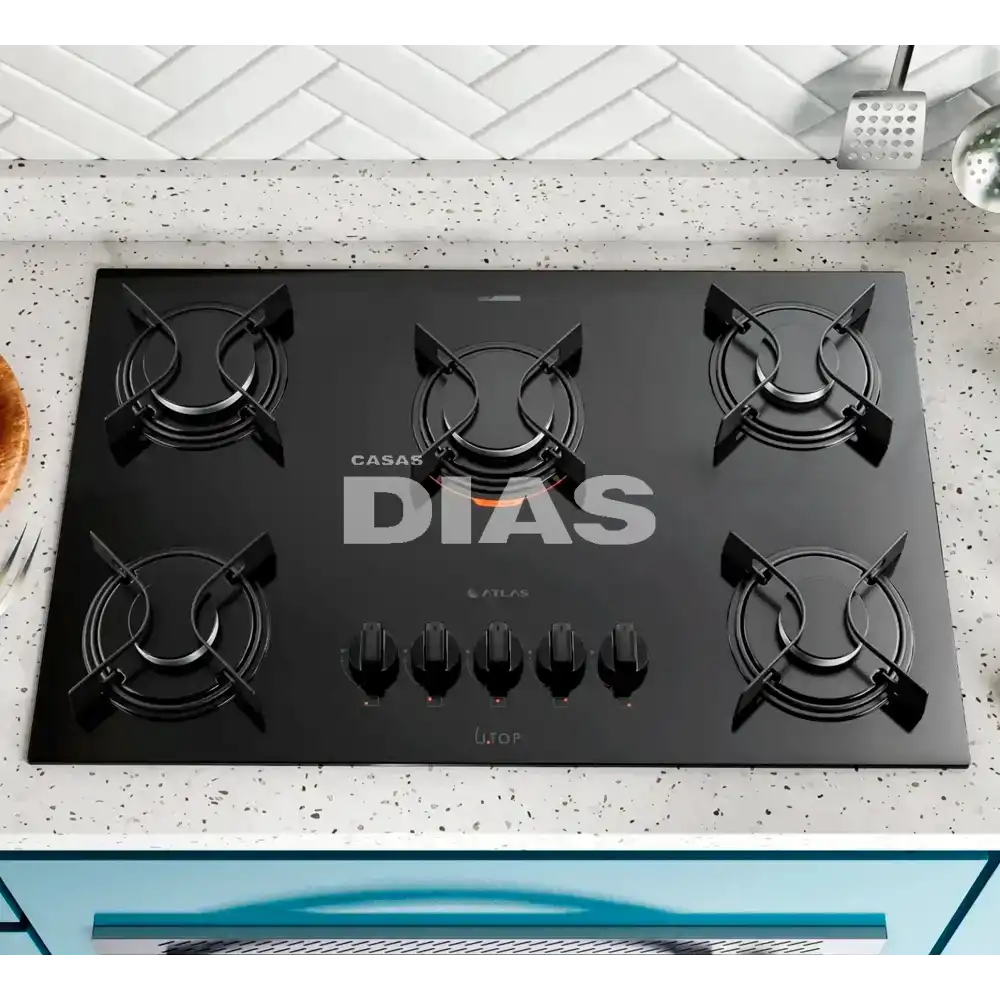 FOGAO 5B ATLAS COOKTOP UTOP MESA VIDRO ESMALTADO VP GAS PRETO