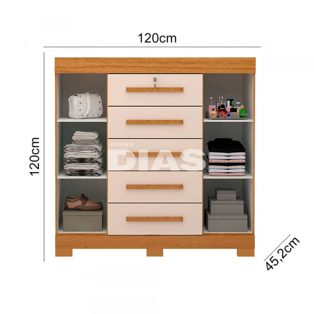 A Cômoda Diana da Acp é uma excelente opção para seu quarto porque permitirá que você organize uma grande quantidade de roupas.