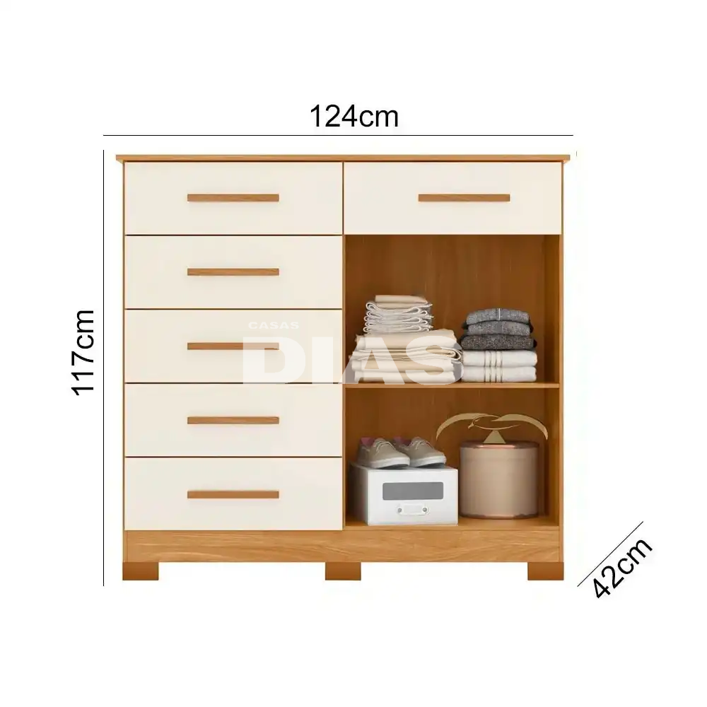 A Cômoda Xangai da Albatroz é uma excelente opção para seu quarto porque permitirá que você organize uma grande quantidade de roupas.