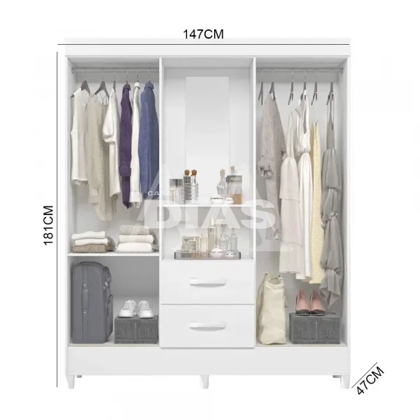 ROUPEIRO 2G 4P. ABRIR C/ ESPELHO ALBATROZ MOBI CAPELINHA BRANCO FOSCO