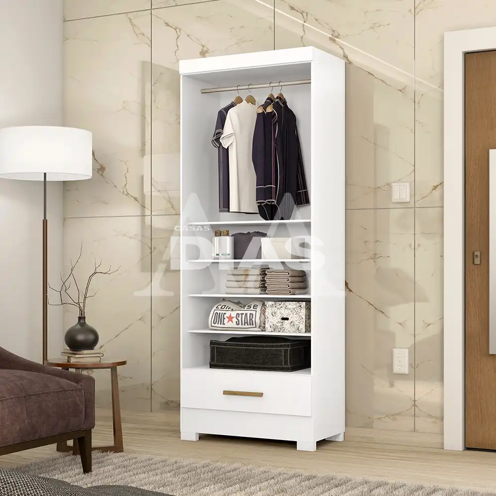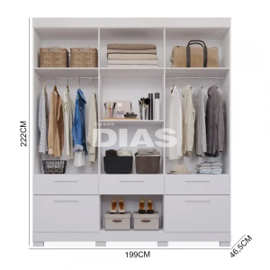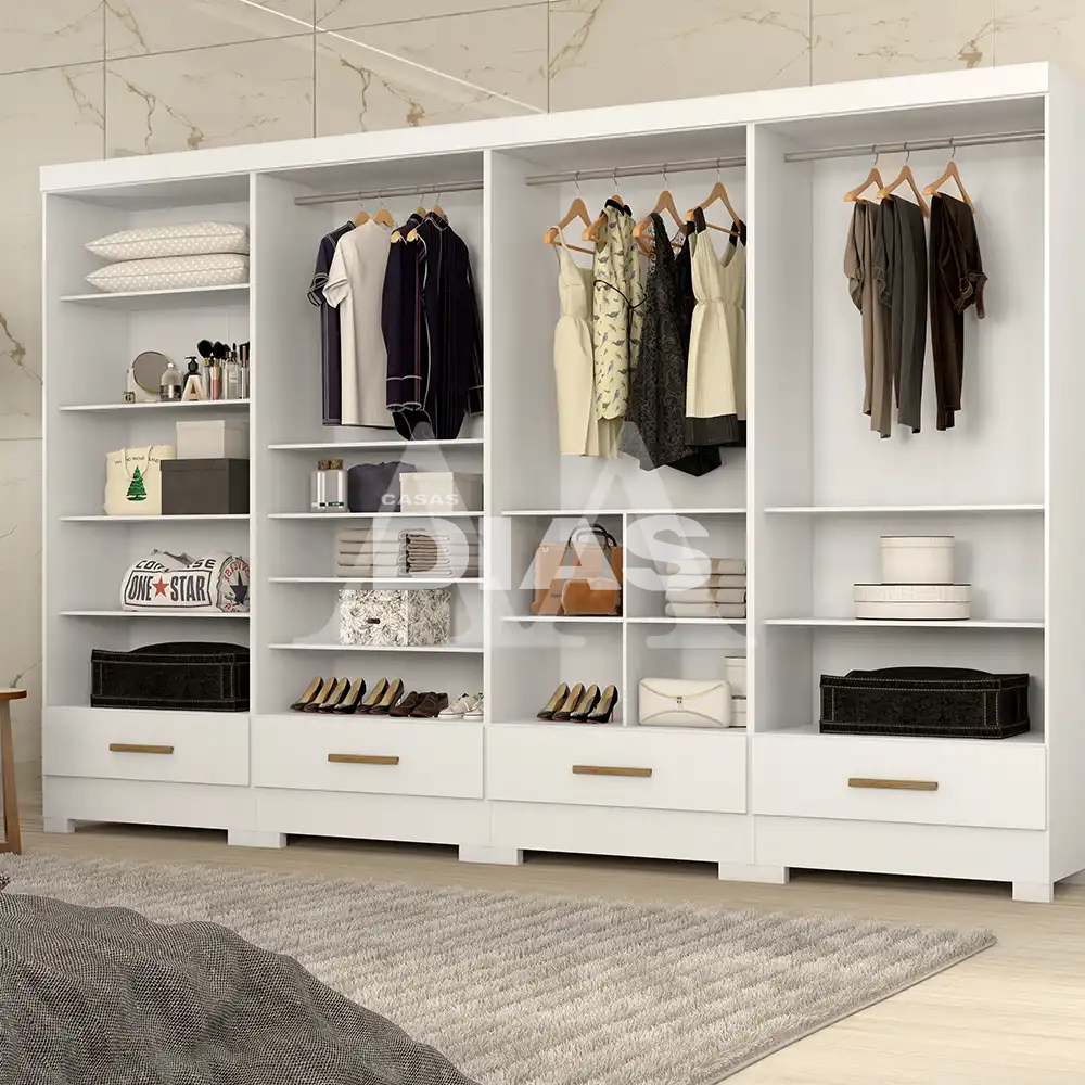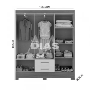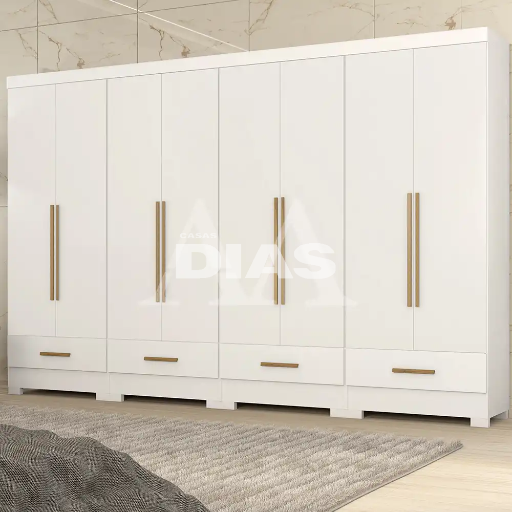 ATENÇÃO: ESTE ROUPEIRO APRESENTA 4 POSSIBILIDADES DE MONTAGEM INTERNA. ALÉM DISSO, SE VOCÊ ADQUIRIR DOIS, TRÊS OU QUATRO DESTES, SE ALINHADOS LATERALMENTE, VOCÊ TERÁ RESPECTIVAMENTE UM ROUPEIRO DE QUATRO, SEIS OU OITO PORTAS.
