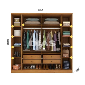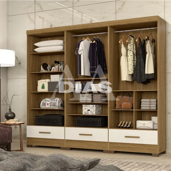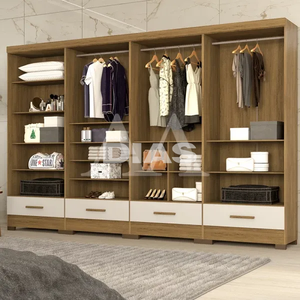 ATENÇÃO: ESTE ROUPEIRO APRESENTA 4 POSSIBILIDADES DE MONTAGEM INTERNA. ALÉM DISSO, SE VOCÊ ADQUIRIR DOIS, TRÊS OU QUATRO DESTES, SE ALINHADOS LATERALMENTE, VOCÊ TERÁ RESPECTIVAMENTE UM ROUPEIRO DE QUATRO, SEIS OU OITO PORTAS.