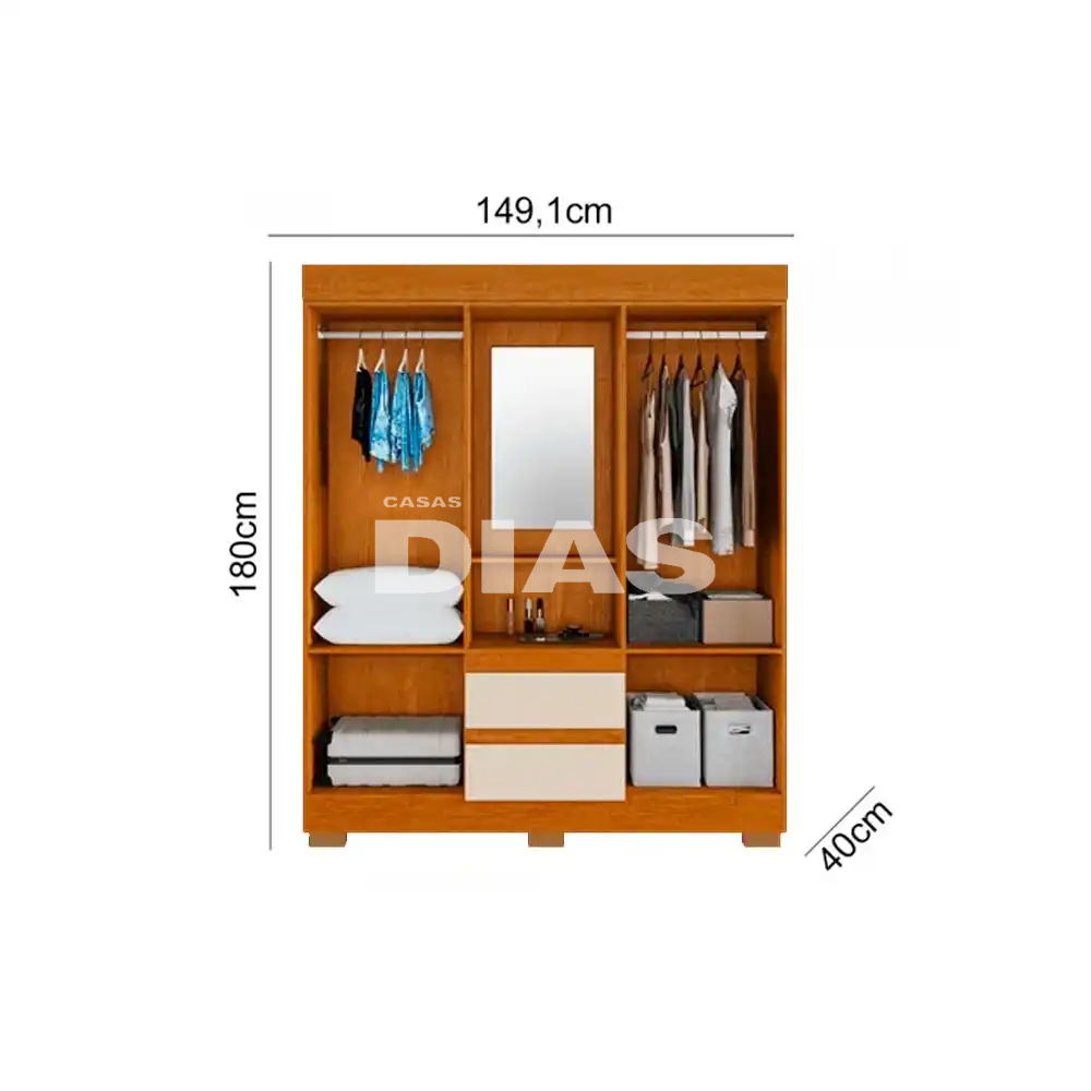 O roupeiro Isabely Capelinha da ACP possui ótima divisão interna, um visual bonito e design moderno vai deixar seu quarto mais charmoso e elegante.