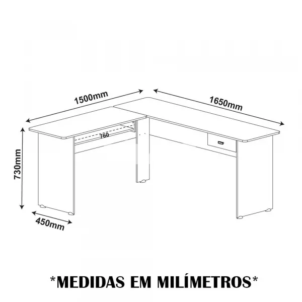 Mesa em L ideal para cantos e otimização do espaço: sim