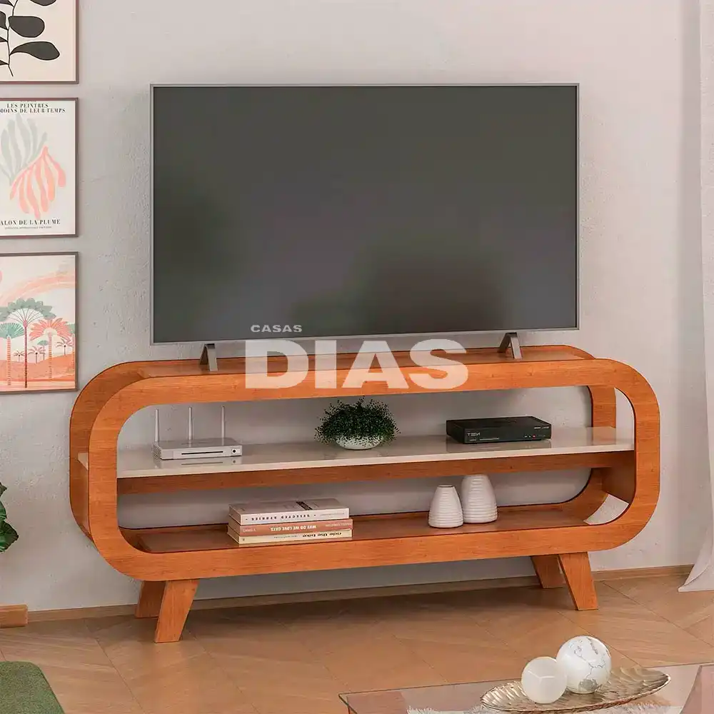 O Rack Theo é uma ótima opção para ser usado em ambientes pequenos, pois é compacto e funcional. Este produto suporta com segurança TV de até 42 polegadas.