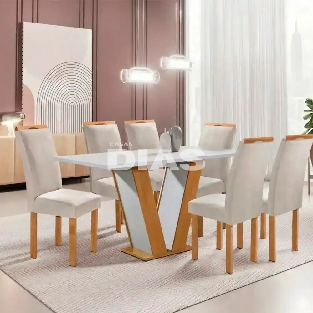O Conjunto de Mesa Qatar com 6 cadeiras da cel moveis dará muito charme e elegância para a sua sala.