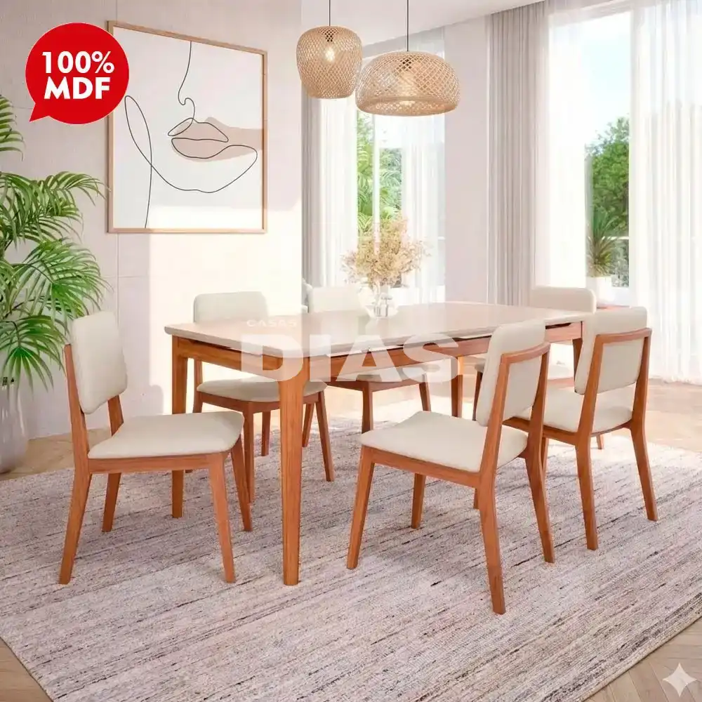 O Conjunto de Mesa Baboa com 6 Cadeiras Amarilis da Cimol dará muito charme e elegância para a sua sala. Esse produto não possui vidro.